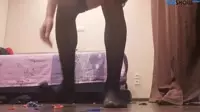 Crossdresser in Black Stockings Fucks Her Dildo